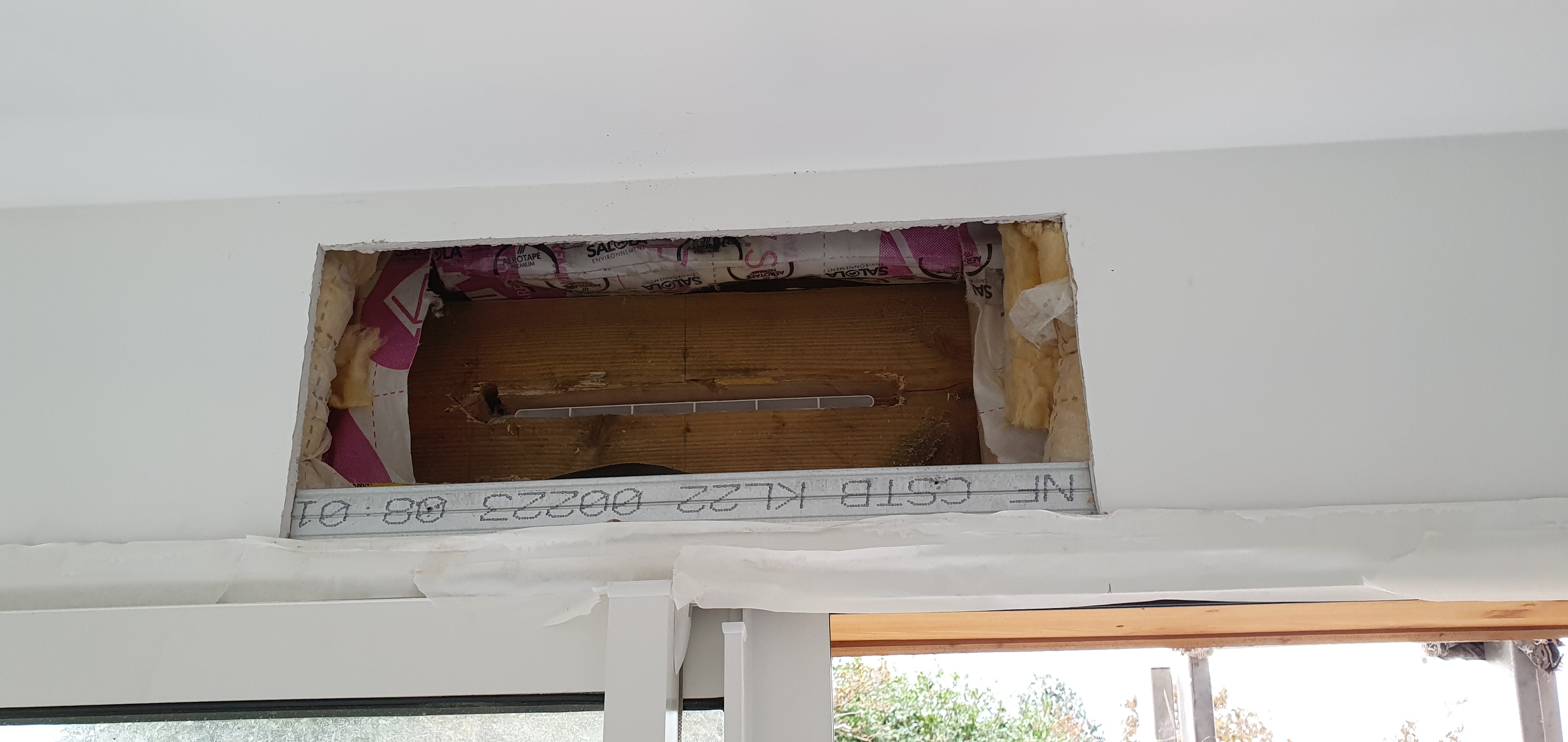 Parmi toutes les problèmes et les erreurs de cette entreprise sur la réalisation de la construction d'une maison individuelle (absence totale de conduite et suivi de travaux, des erreurs sur les plans fournis aux artisans, des délais catastrophique (8 mois de retard), une belle boulette de l'entreprise Maison Dervenn: Oubli des ouvertures d'entrée d'air pour la VM.C. !! Nécessité de percer la contre-cloison, l'isolation, les films pare-vapeur et pare-pluie et les linteaux au dessus des baies vitrées: Voir Photo. Les champions du monde pour vous souffler pipo-prouff dans le pipo-tron ....