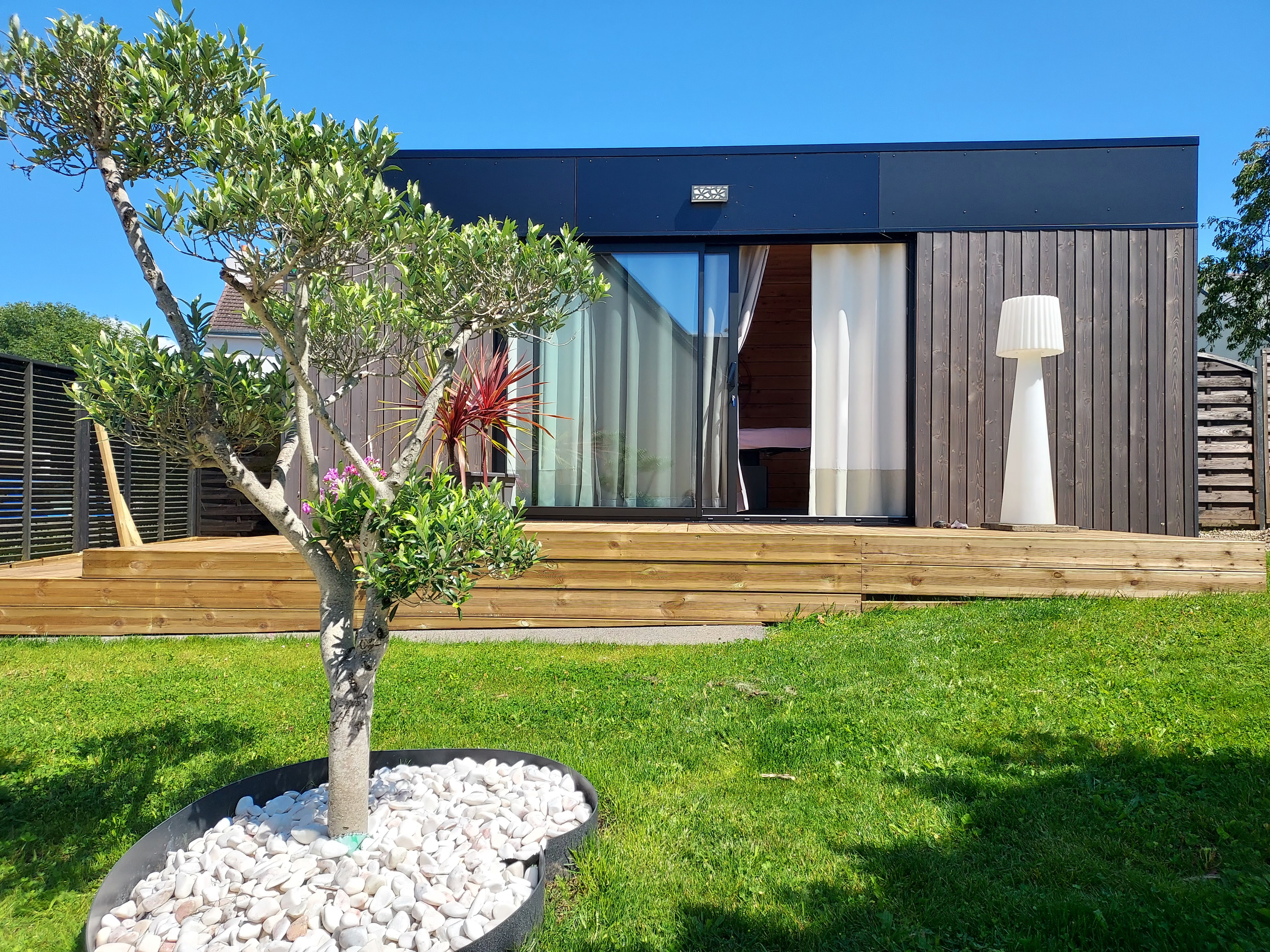 Le loft de 20m2 que nous avons installé sur notre terrain est design et tres agréable et nous permet d'accueillir nos amis hyper confortablement au milieu du jardin ! Merci MyGardenLoft !